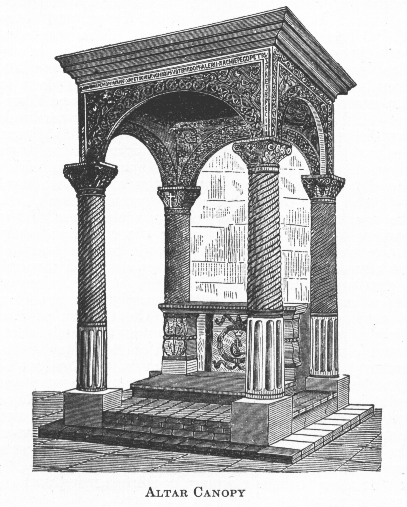 MLA citation. "Baldachinum of the Altar." The Catholic Encyclopedia. Vol. 2. New York: Robert Appleton Company, 1907. <http://www.newadvent.org/cathen/02217c.htm>.