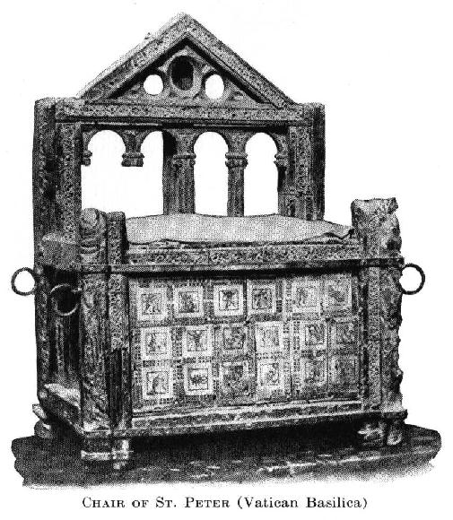 MLA citation. "Chair of Peter." The Catholic Encyclopedia. Vol. 3. New York: Robert Appleton Company, 1908. <http://www.newadvent.org/cathen/03551e.htm>.